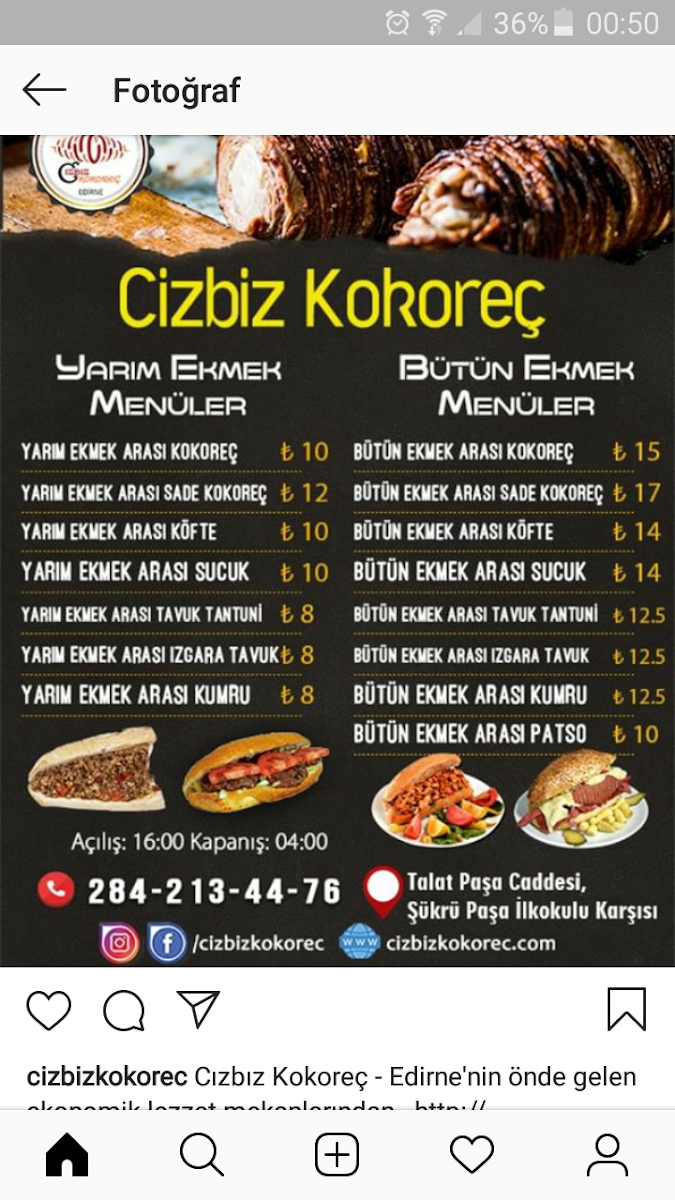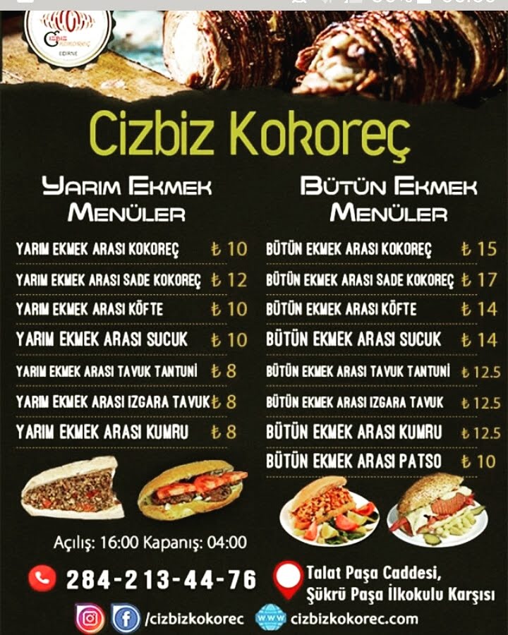 Cızbız Kokoreç, located in Edirne, offers a delightful and diverse menu that caters to a wide range of tastes. The heart of the menu revolves around Kokoreç, a Turkish delicacy made from lamb intestines, served in various styles. For those seeking a satisfying and hearty bite, options like the Yarım Ekmek Arası Közde Kuzu Kokoreç and Bütün Ekmek Arası Közde Kokoreç are perfect, offering tender lamb cooked to perfection and served in different bread formats. You can also try the Tam Ekmek Arası Uykuluk or the simpler Sade Közde Kokoreç, which are equally delicious yet more straightforward. For an extra kick, there’s the Domatesli & Yeşil Biberli Yarım Ekmek Arası Közde Kokoreç, which adds tomatoes and green peppers for added flavor.